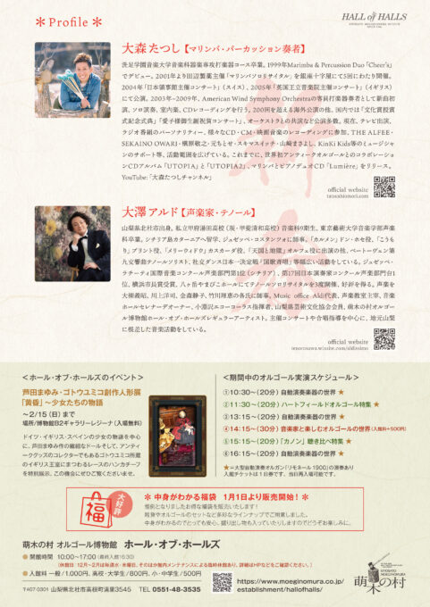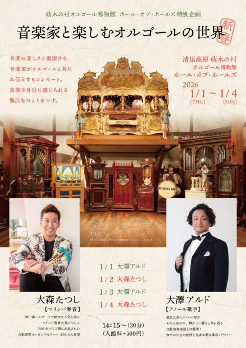 音楽の楽しさと奥深さを、音楽家がオルゴールと共にお伝えする人気の新春特別コンサート。芸術を身近に感じられる贅沢なひとときです。豊かな音楽に包まれて、輝かしい新年の幕開けを!
