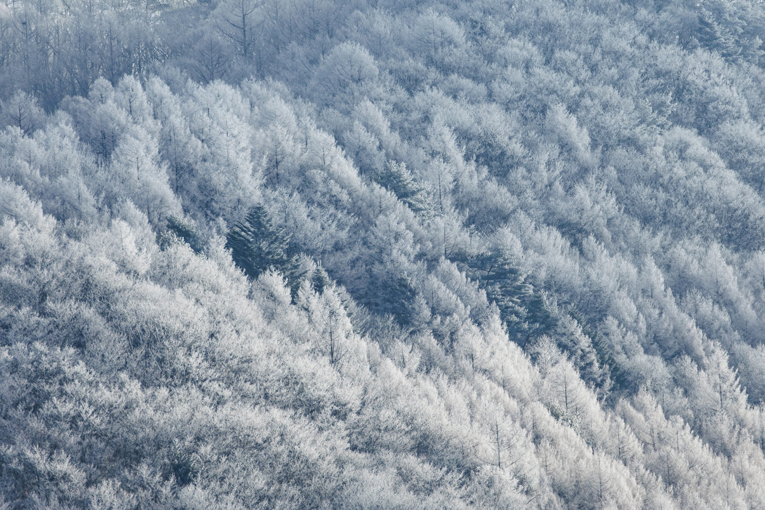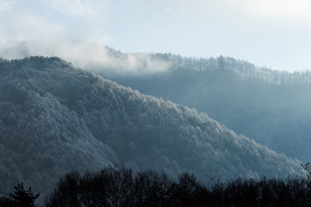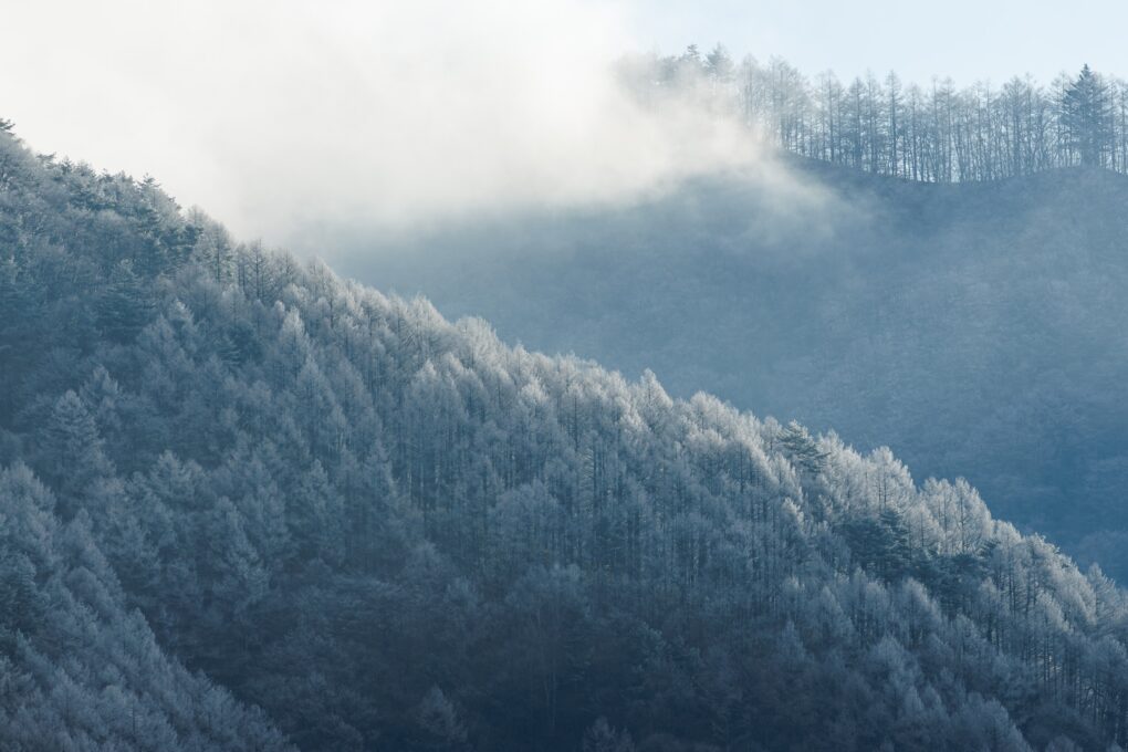「今朝あいの原から見た飯盛山山麓の霧氷が美しかったので、 思わずカメラを持ち出しました。水墨画のようで幻想的でした。」