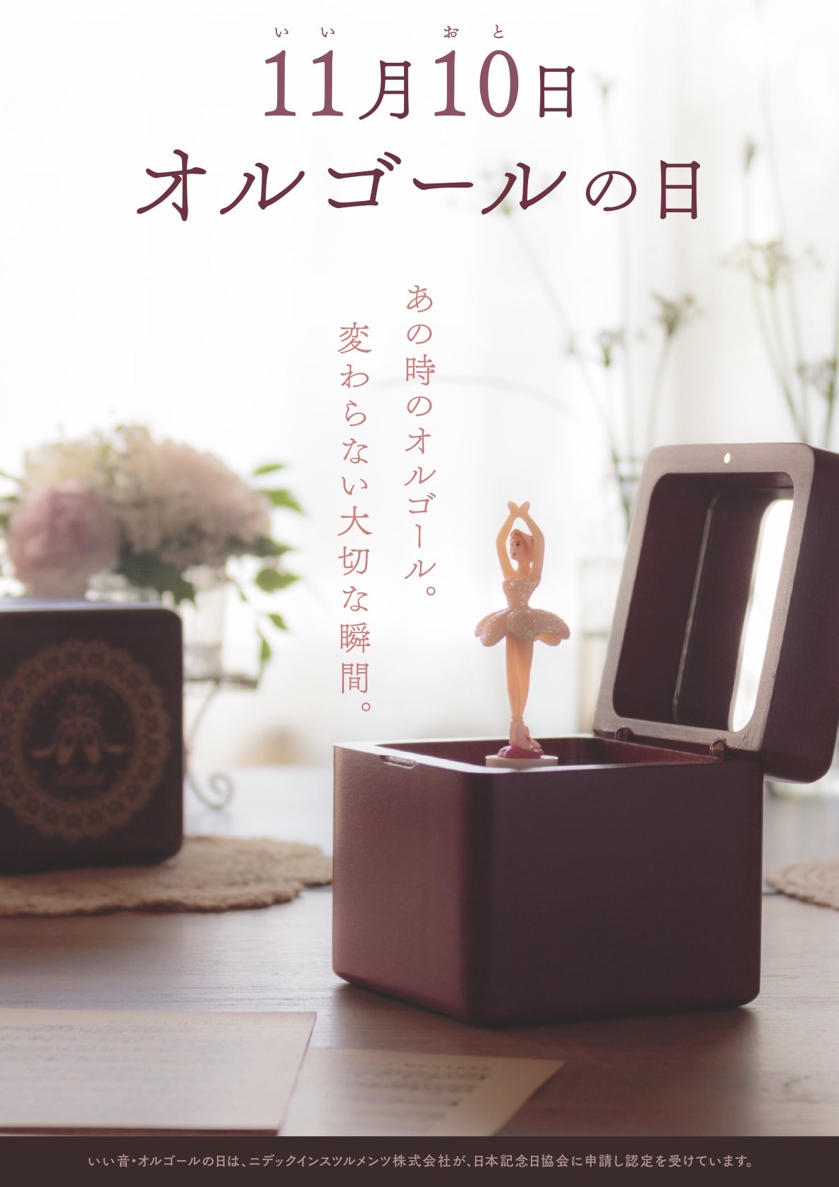オルゴールの文化や歴史を伝え、広く浸透していくことを目的に、日本電産サンキョー(現ニデックインスツルメント株式会社)とオルゴール記念館「すわのね」(長野県下諏訪)が、日本記念日協会に申請し、認定・登録された。